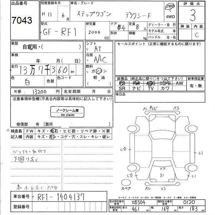 Honda STEP WAGON с аукциона Японии JU Ishikawa лот № 7043