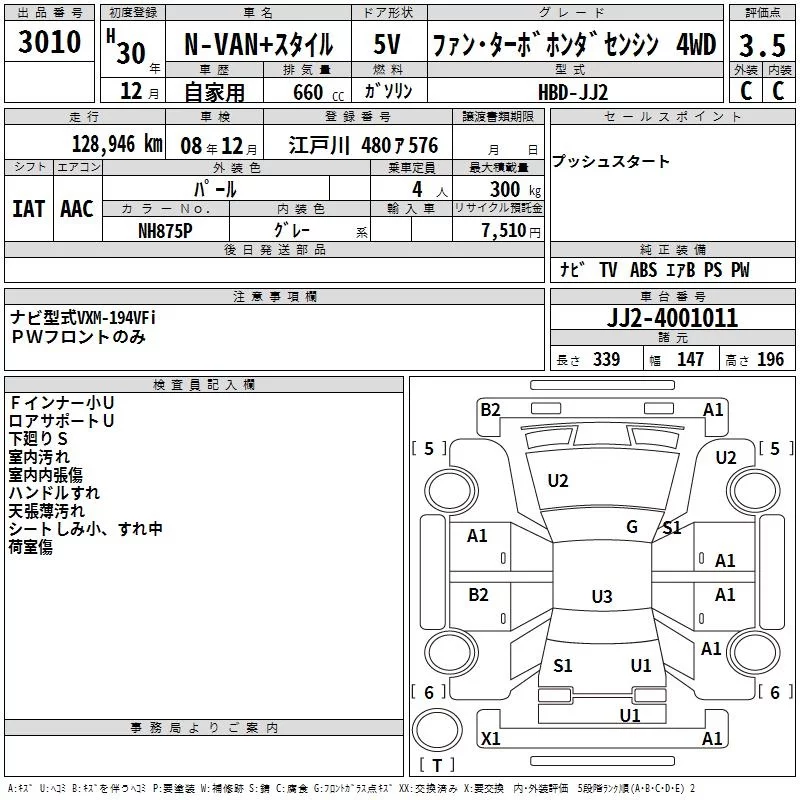 Honda N VAN с аукциона Японии TAA Hokkaido лот № 3010
