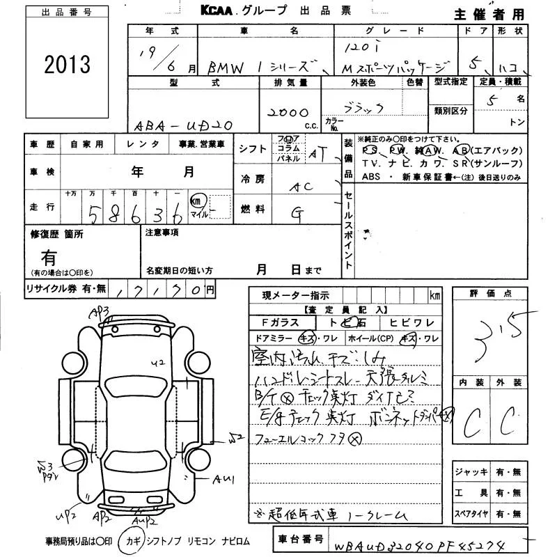 BMW 1-Series с аукциона Японии KCAA Fukuoka лот № 2013