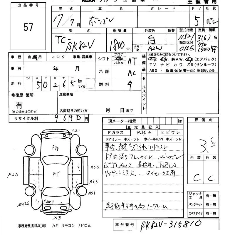 Mazda BONGO VAN с аукциона Японии KCAA Fukuoka лот № 57
