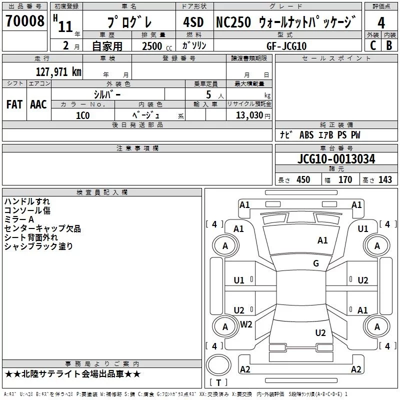 Toyota PROGRES с аукциона Японии TAA Chubu лот № 70008