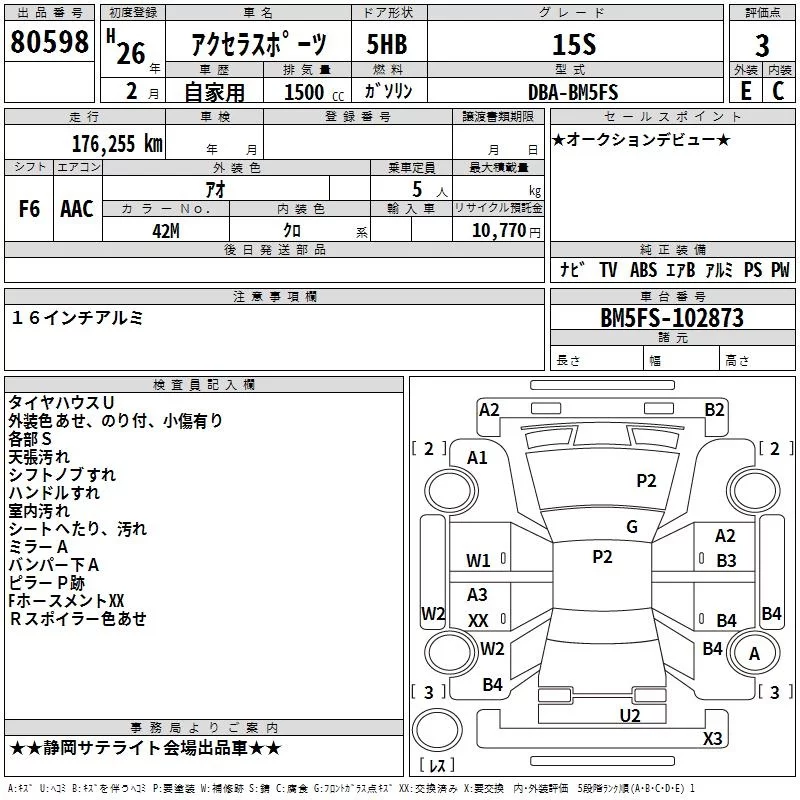 Mazda AXELA с аукциона Японии TAA Chubu лот № 80598