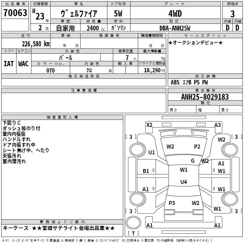 Toyota VELLFIRE с аукциона Японии TAA Tohoku лот № 70063