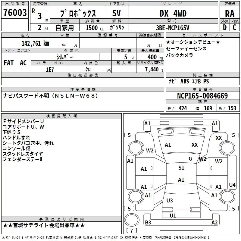 Toyota PROBOX с аукциона Японии TAA Tohoku лот № 76003