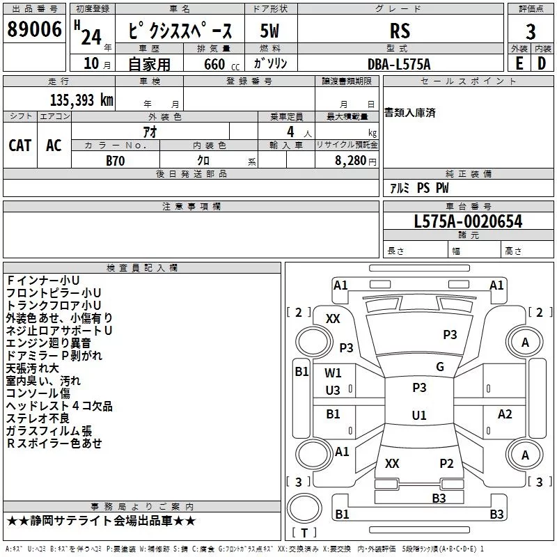 Toyota PIXIS SPACE с аукциона Японии TAA Chubu лот № 89006