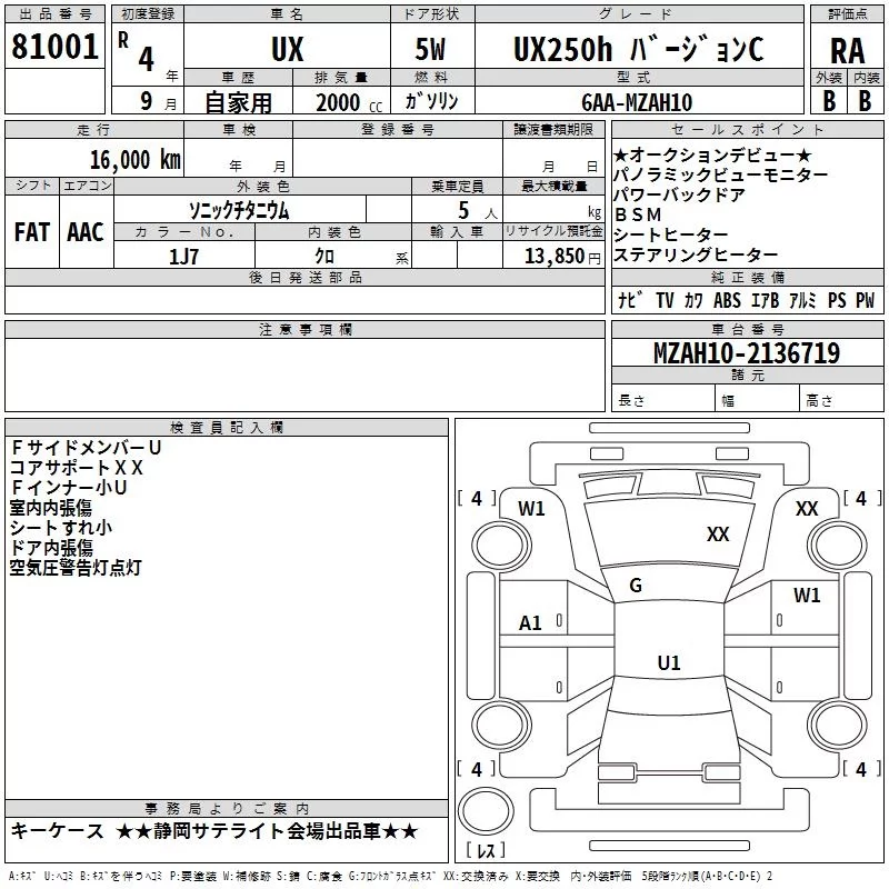 Lexus UX с аукциона Японии TAA Chubu лот № 81001