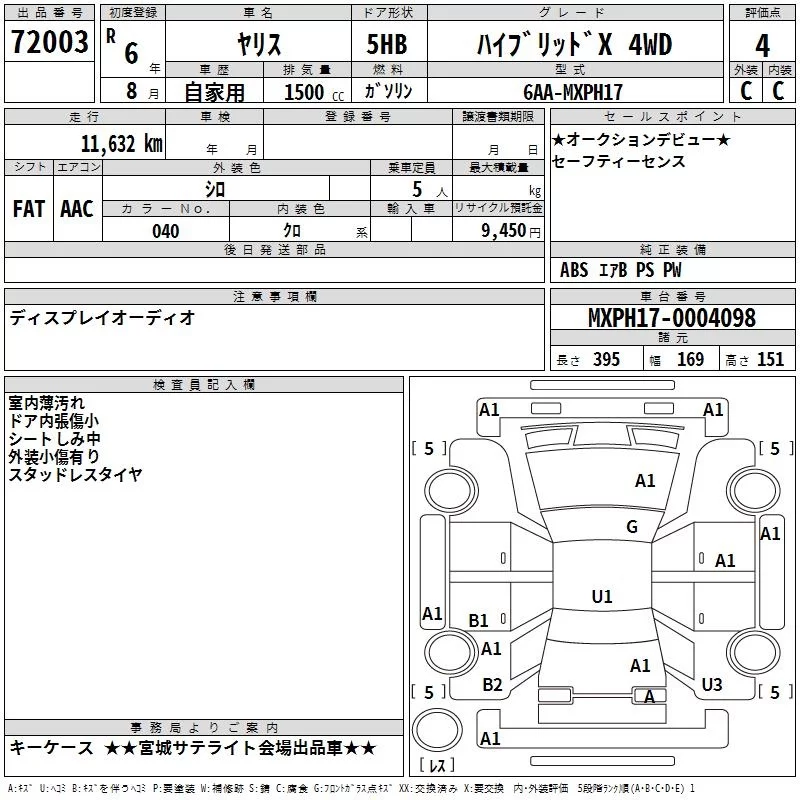 Toyota YARIS с аукциона Японии TAA Tohoku лот № 72003
