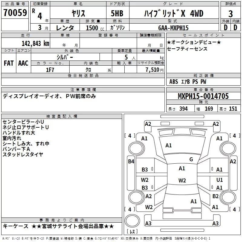 Toyota YARIS с аукциона Японии TAA Tohoku лот № 70059