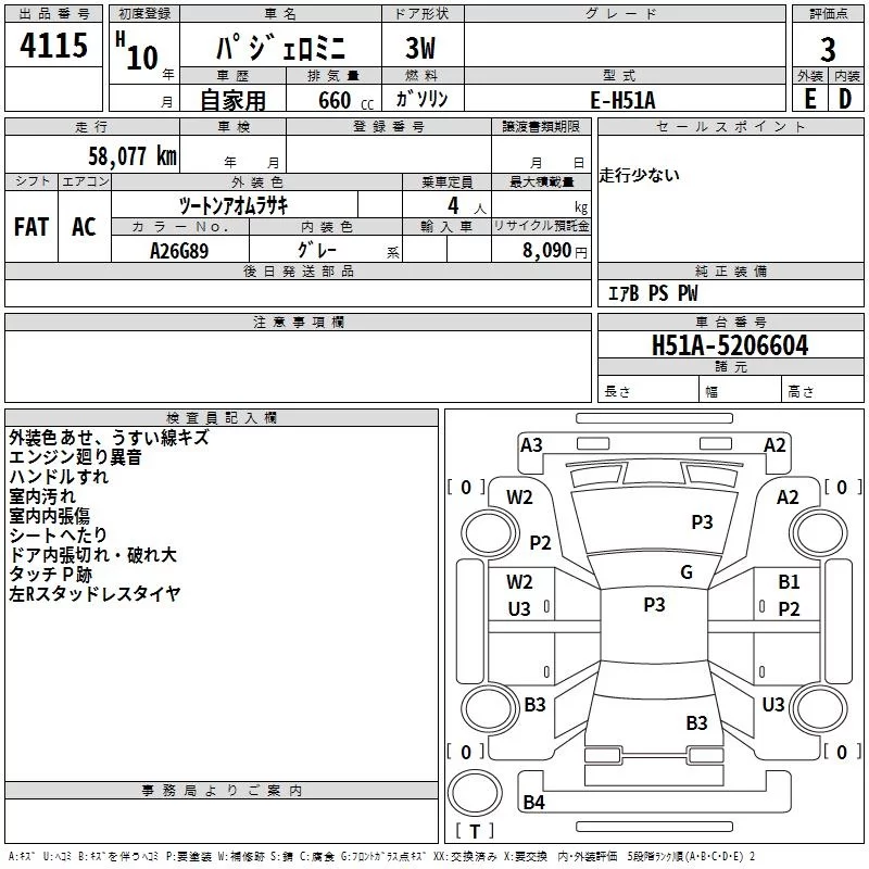 Mitsubishi PAJERO MINI с аукциона Японии TAA Chubu лот № 4115