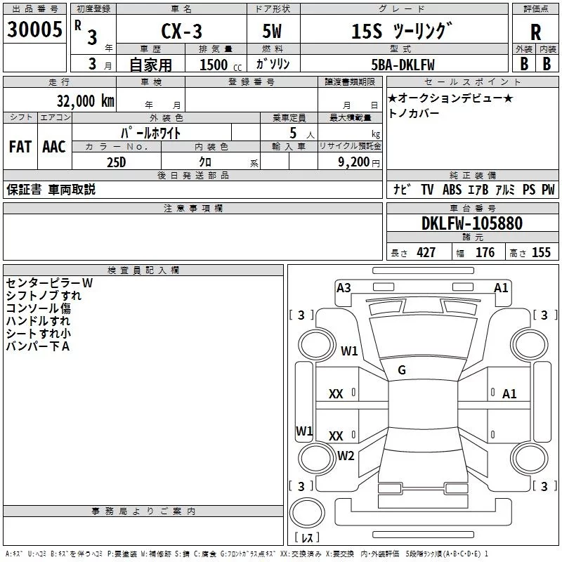 Mazda CX-3 с аукциона Японии TAA Chubu лот № 30005