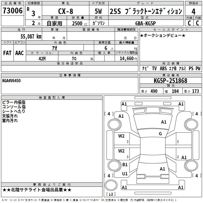 Mazda CX-8 с аукциона Японии TAA Chubu лот № 73006