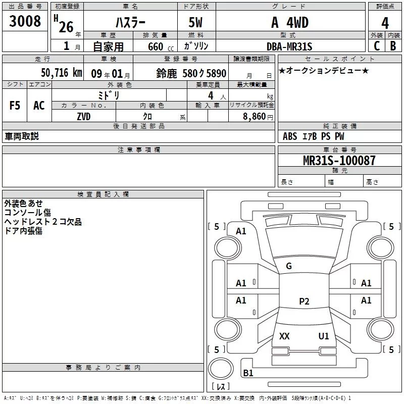 Suzuki HUSTLER с аукциона Японии TAA Chubu лот № 3008