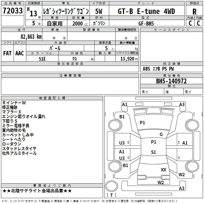 Subaru LEGACY с аукциона Японии TAA Chubu лот № 72033