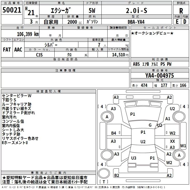 Subaru EXIGA с аукциона Японии TAA Chubu лот № 50021