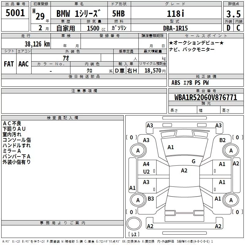 BMW 1-Series с аукциона Японии TAA Chubu лот № 5001