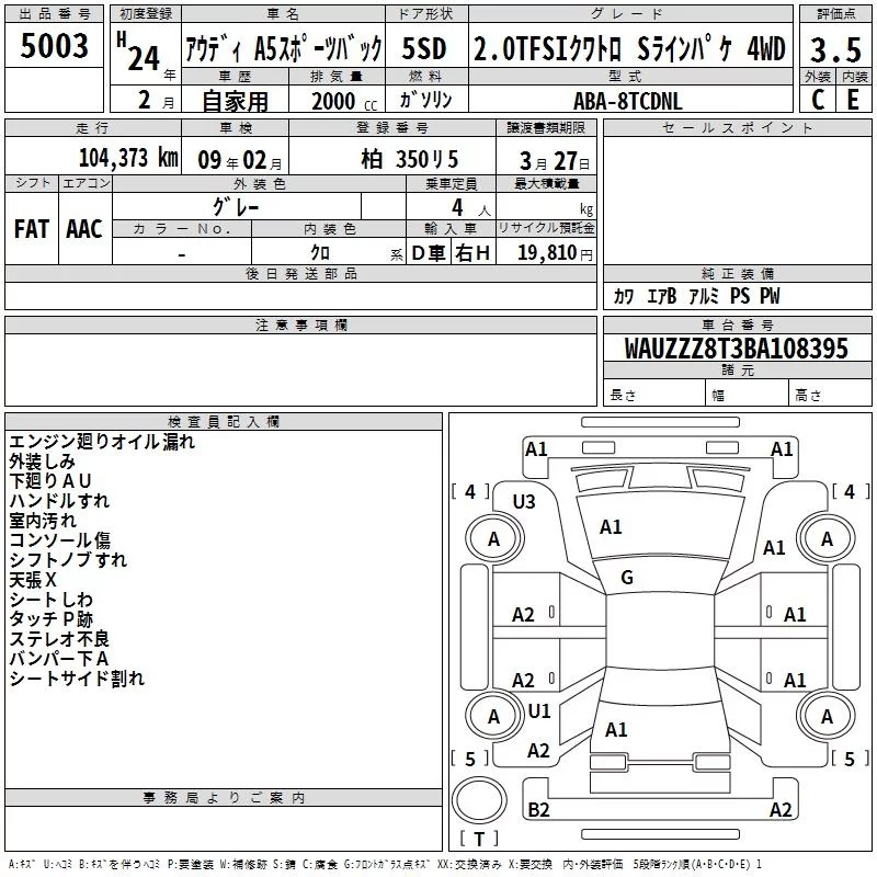 Audi A5 с аукциона Японии TAA Chubu лот № 5003