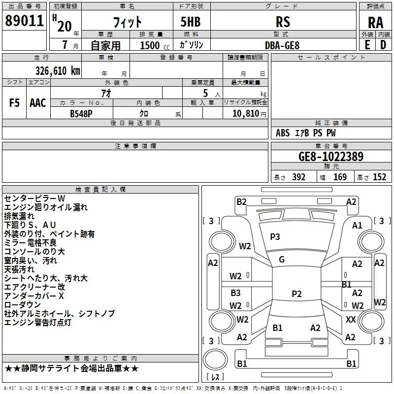 Honda FIT с аукциона Японии TAA Chubu лот № 89011