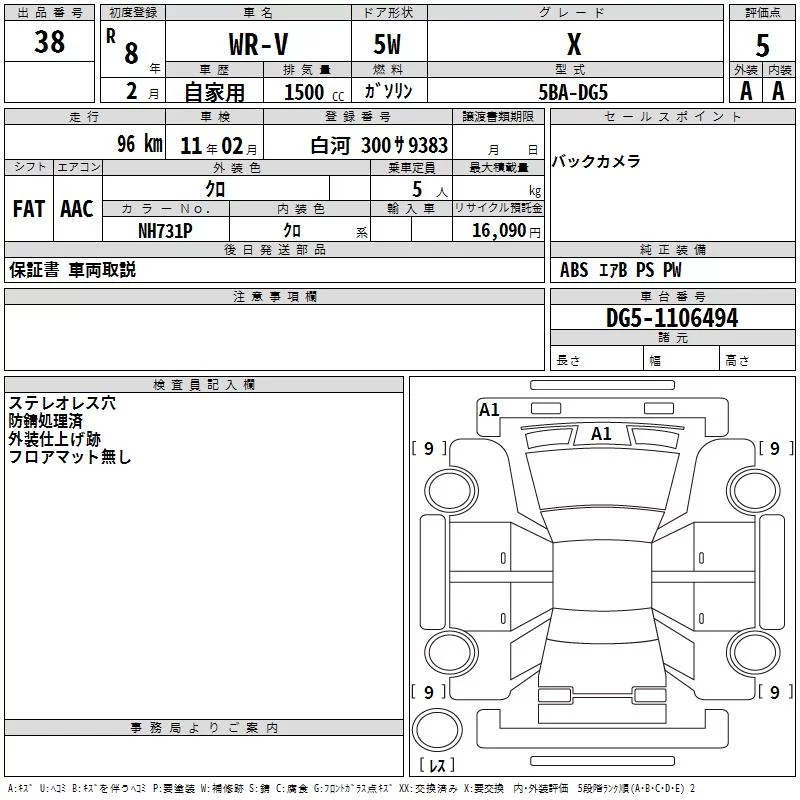 Honda WR-V с аукциона Японии TAA Tohoku лот № 38