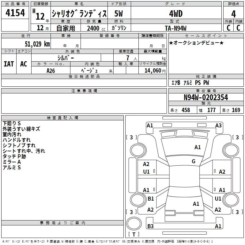 Mitsubishi CHARIOT GRANDIS с аукциона Японии TAA Chubu лот № 4154