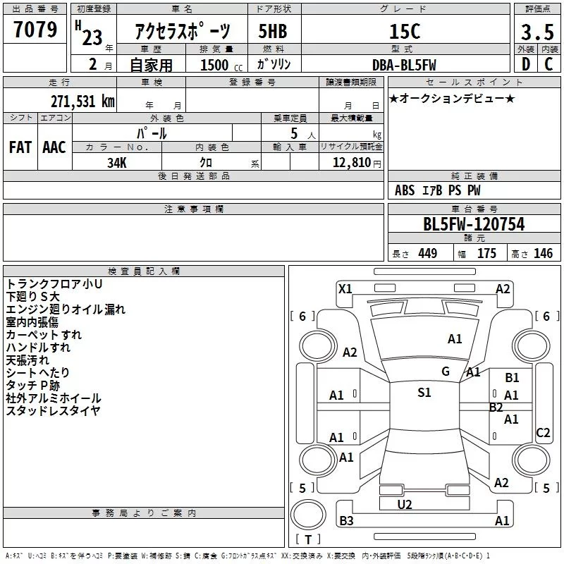 Mazda AXELA с аукциона Японии TAA Tohoku лот № 7079