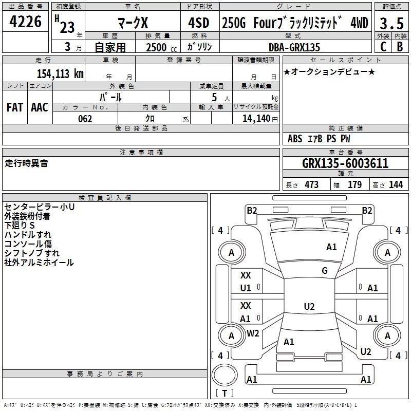 Toyota MARK X с аукциона Японии TAA Chubu лот № 4226