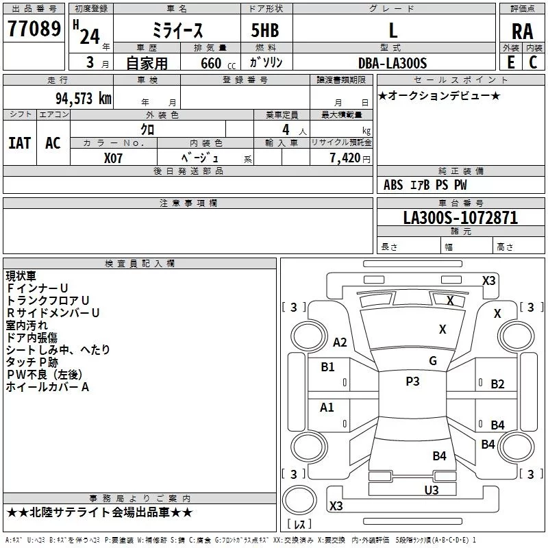 Daihatsu MIRA E S с аукциона Японии TAA Chubu лот № 77089