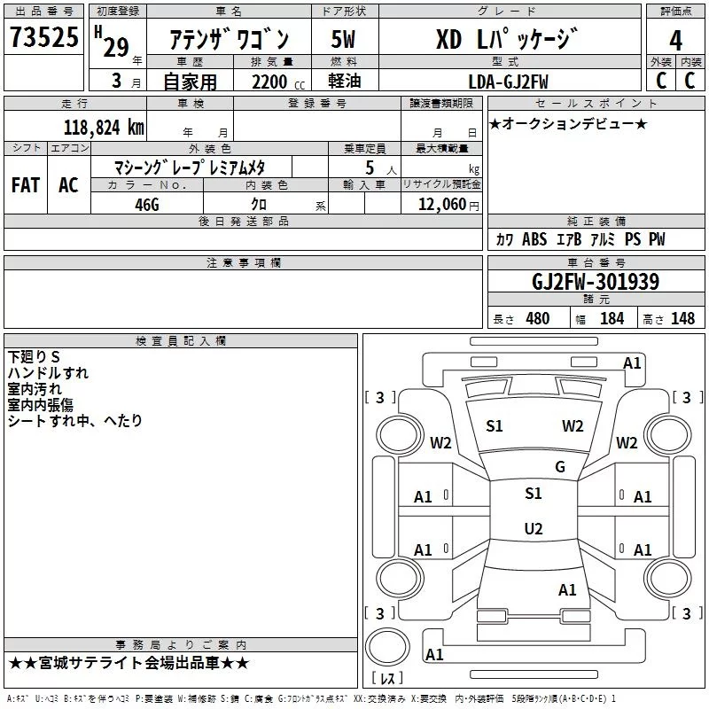 Mazda ATENZA WAGON с аукциона Японии TAA Tohoku лот № 73525