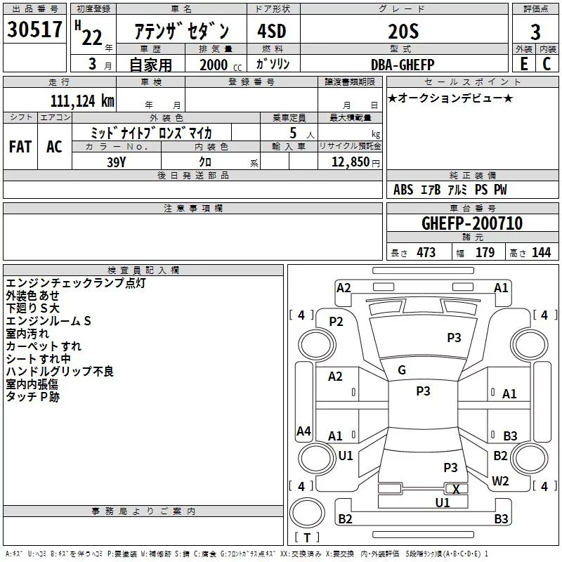 Mazda ATENZA SEDAN с аукциона Японии TAA Chubu лот № 30517