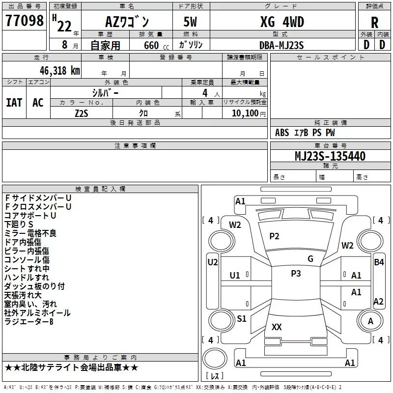 Mazda AZ WAGON с аукциона Японии TAA Chubu лот № 77098
