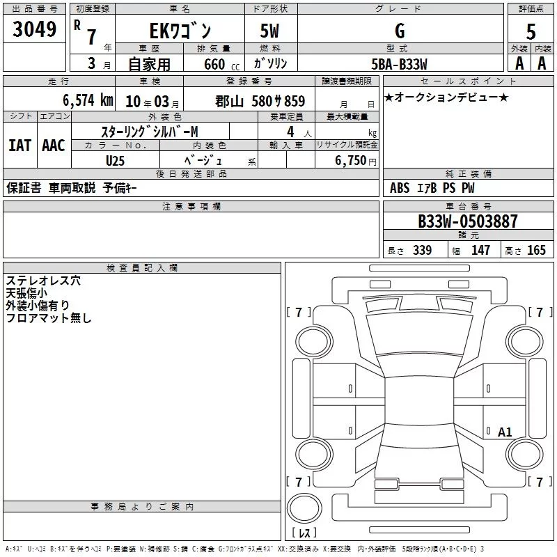 Mitsubishi EK WAGON с аукциона Японии TAA Tohoku лот № 3049