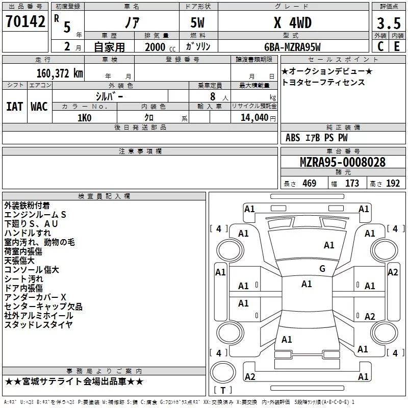 Toyota NOAH с аукциона Японии TAA Tohoku лот № 70142