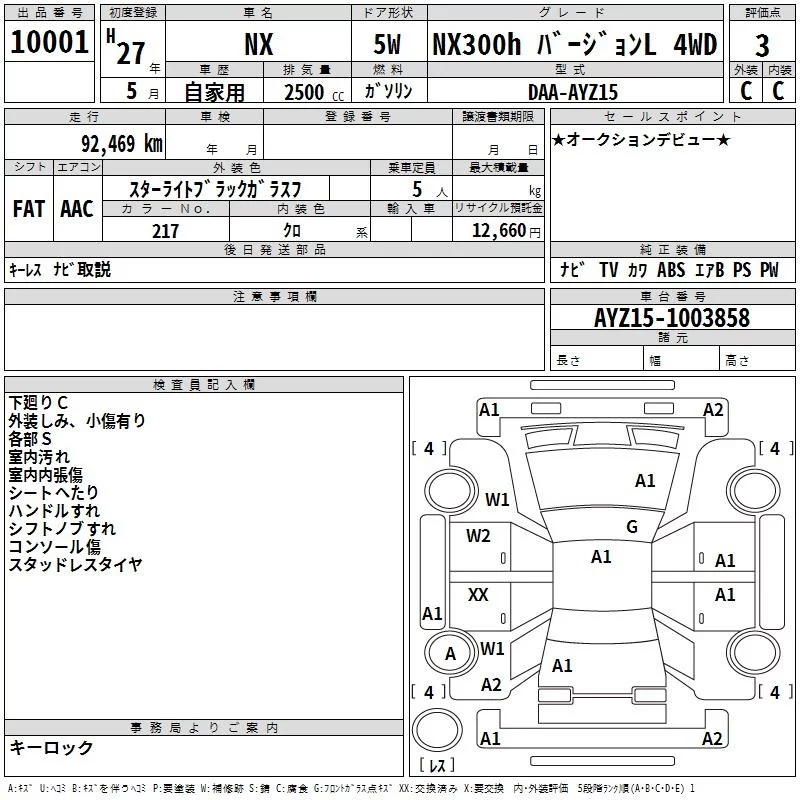 Lexus NX с аукциона Японии TAA Tohoku лот № 10001