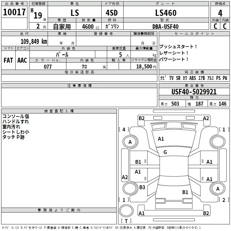 Lexus LS с аукциона Японии TAA Chubu лот № 10017