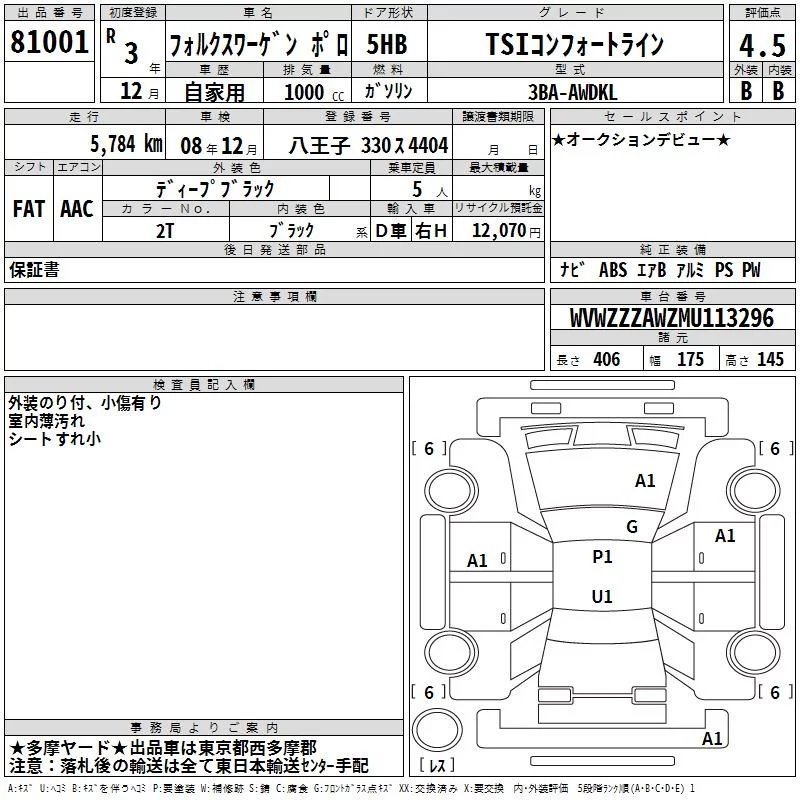 Volkswagen POLO с аукциона Японии TAA Kanto лот № 81001