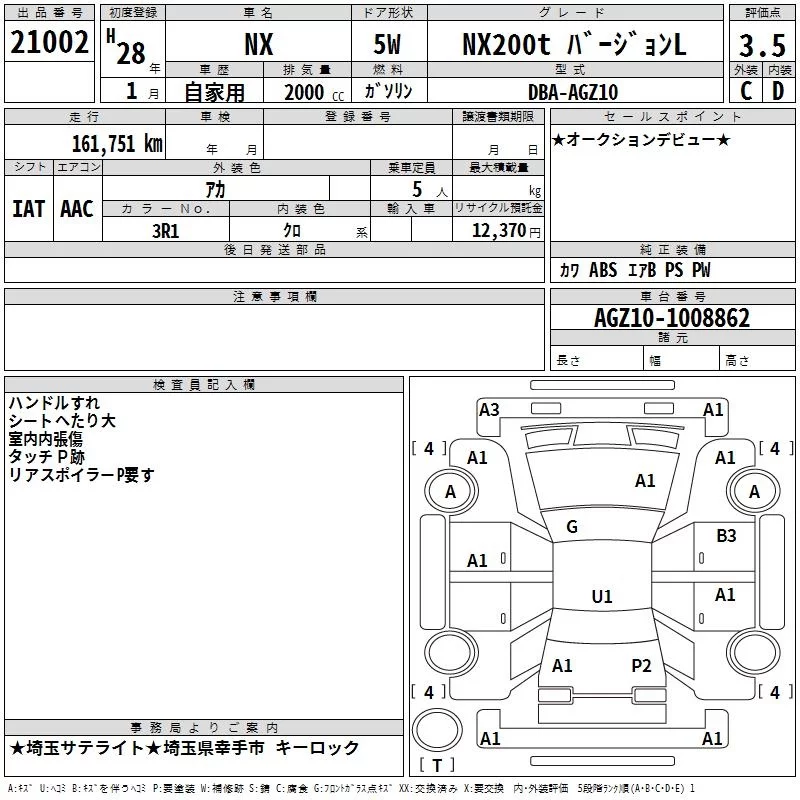 Lexus NX с аукциона Японии TAA Kanto лот № 21002