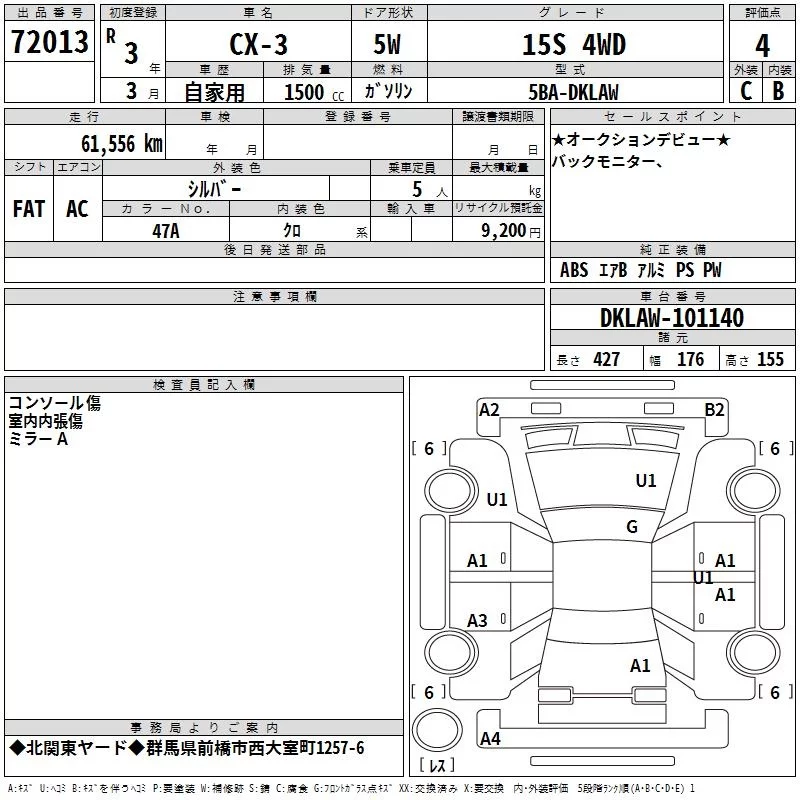 Mazda CX-3 с аукциона Японии TAA Kanto лот № 72013