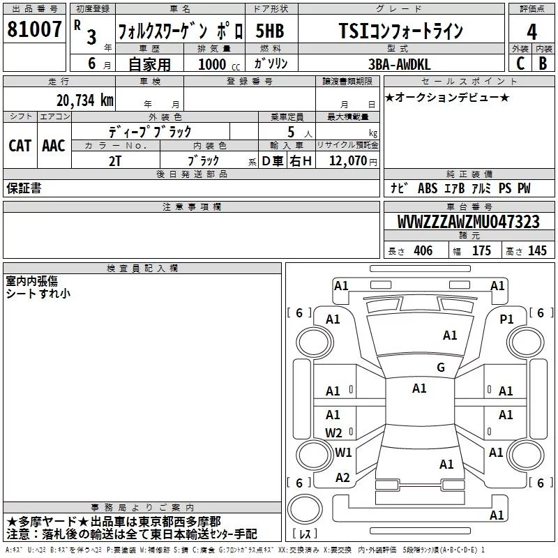 Volkswagen POLO с аукциона Японии TAA Kanto лот № 81007