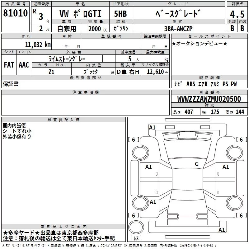 Volkswagen POLO с аукциона Японии TAA Kanto лот № 81010