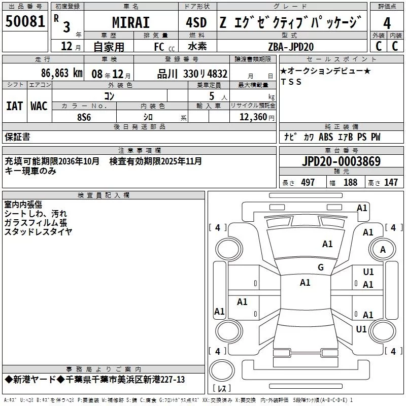Toyota MIRAI с аукциона Японии TAA Kanto лот № 50081