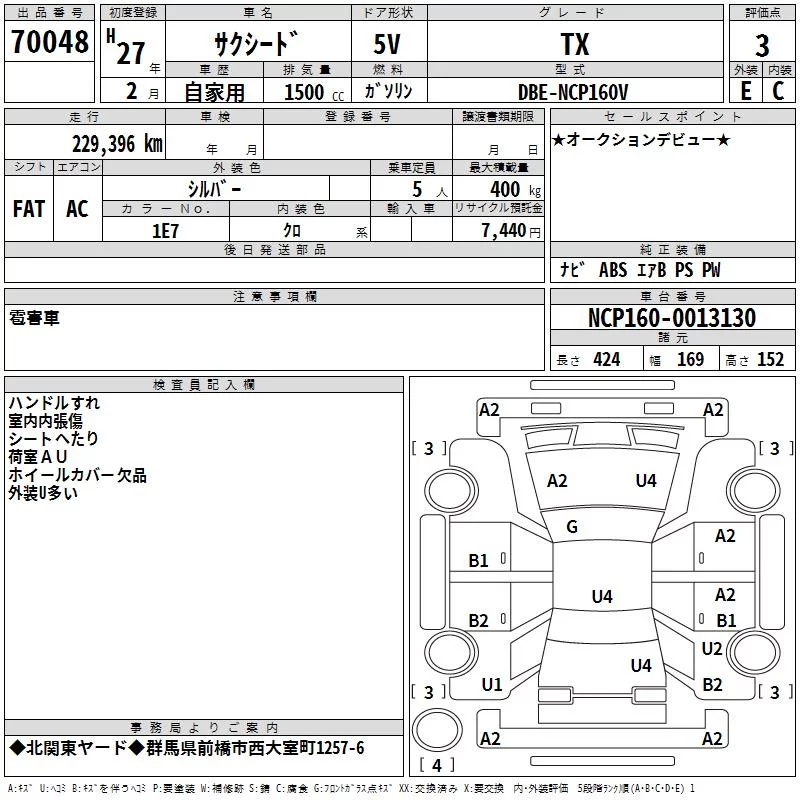 Toyota SUCCEED с аукциона Японии TAA Kanto лот № 70048