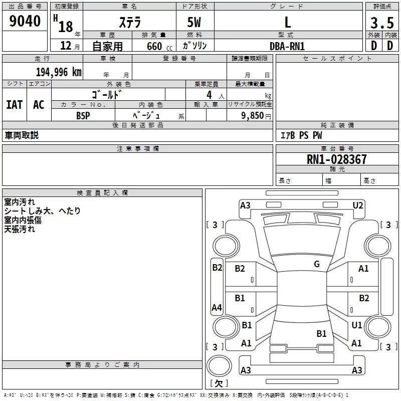 Subaru STELLA с аукциона Японии TAA Kanto лот № 9040