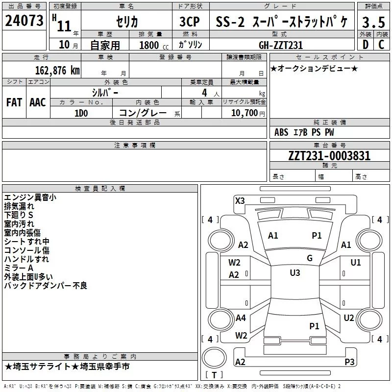 Toyota CELICA с аукциона Японии TAA Kanto лот № 24073