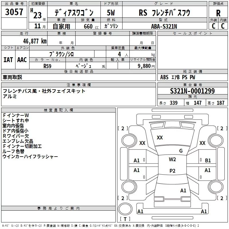 Subaru GOLF ALLTRACK с аукциона Японии TAA Kanto лот № 3057