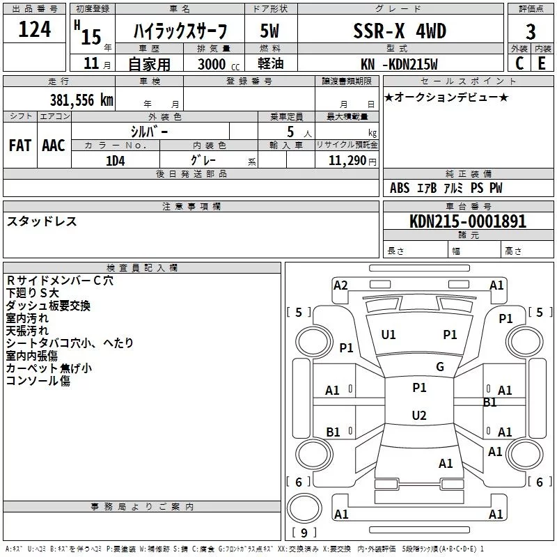 Toyota HILUX SURF с аукциона Японии TAA Kanto лот № 124