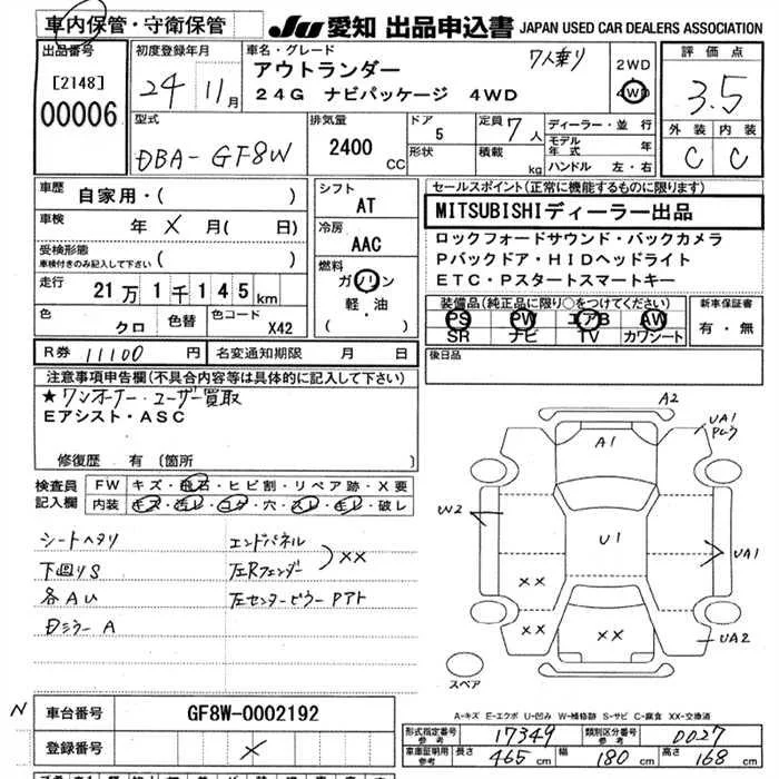 Mitsubishi OUTLANDER с аукциона Японии JU Aichi лот № 6