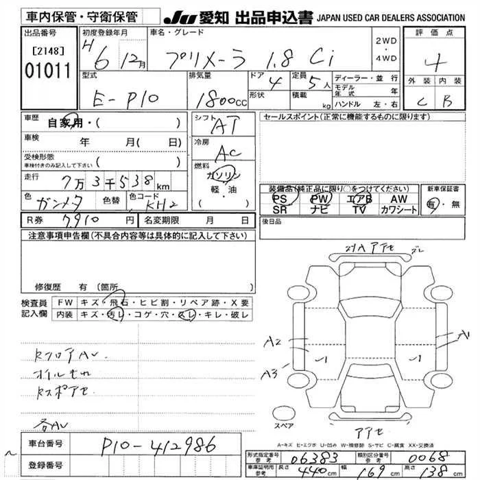 Nissan PRIMERA с аукциона Японии JU Aichi лот № 1011