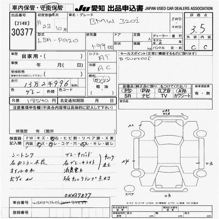 BMW 3-Series с аукциона Японии JU Aichi лот № 30377