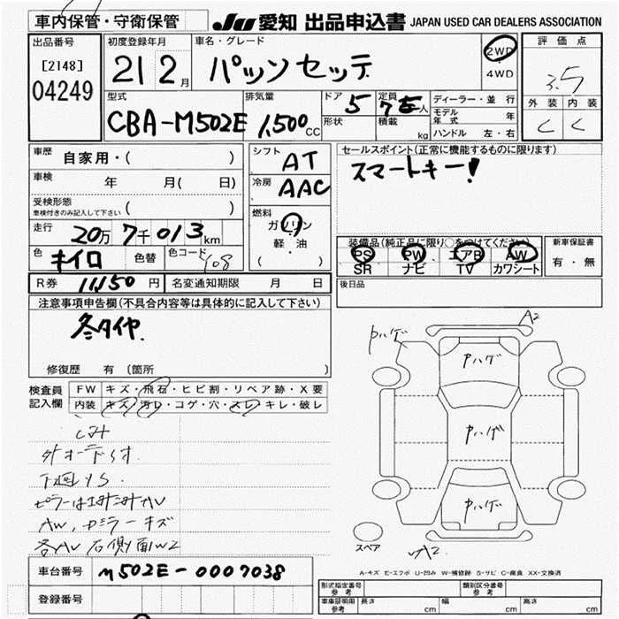 Toyota PASSO SETTE с аукциона Японии JU Aichi лот № 4249