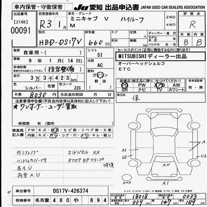 Mitsubishi MINICAB VAN с аукциона Японии JU Aichi лот № 91