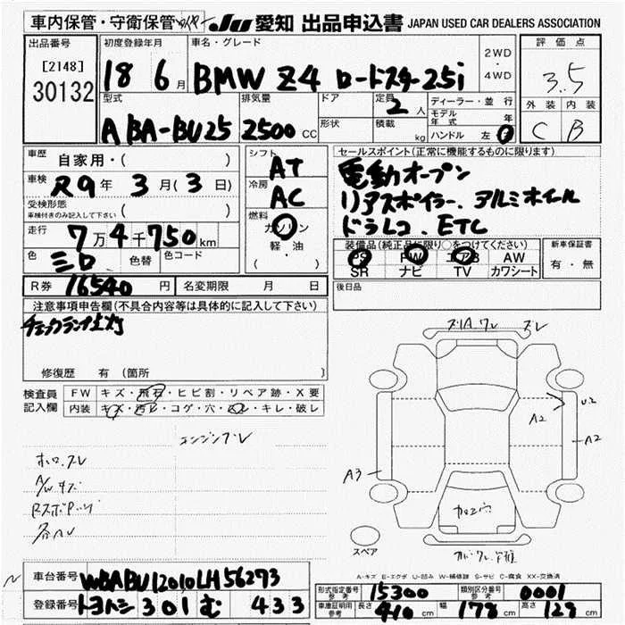 BMW Z4 с аукциона Японии JU Aichi лот № 30132